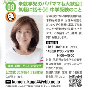 今さら聞けない中学受験の基本的な知識や、お悩み相談など、なんでも気軽に話してみませんか?経験者の先輩ママをゲストにお招きして、疑問・質問にお答えします。 | 開催日程| 11月11日 (木)11:00~12:00 14日 […]