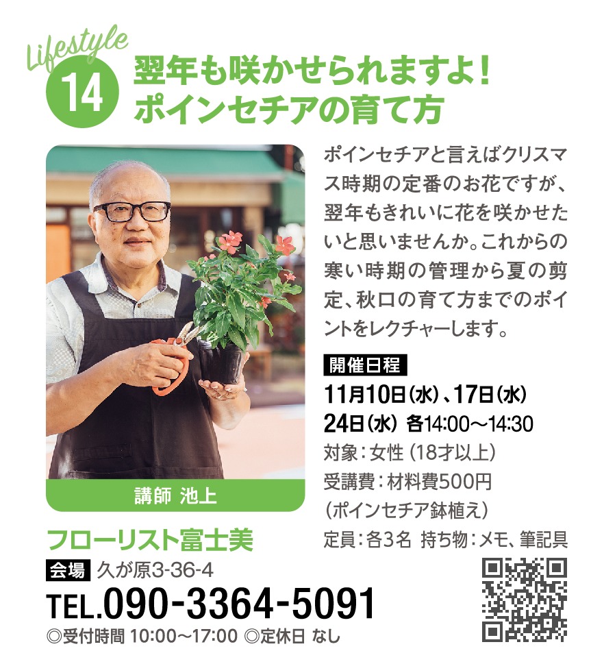 受講費 : 材料費500円 (ポインセチア鉢植え)