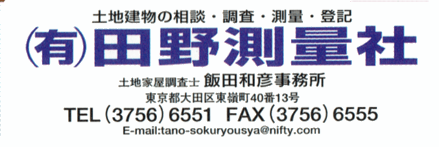 田野測量社 住まい・不動産 への投稿 2019年5月18日 基本情報 住所: 東嶺町40-13 電話: 3756-6551 fax: 3756-6555 営業時間: 9:00~17:00 休業日: 土日祝 ホームページ:https://www.suehiro-kugahara.tokyo/shop/%e7%94%b0%e9%87%8e%e6%b8%ac%e9%87%8f%e7%a4%be/ ---お店を選択--- 地図